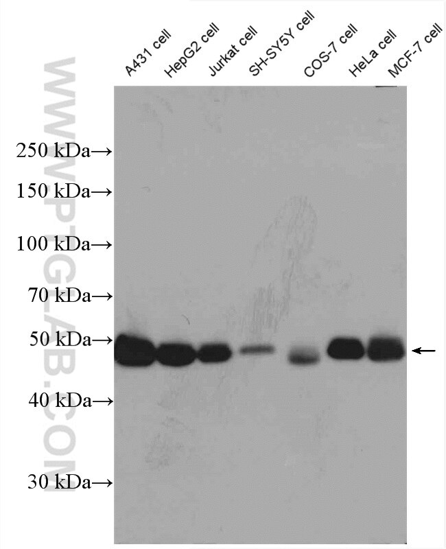 The RCC1 antibody from Proteintech is a rabbit polyclonal antibody to a recombinant protein of human RCC1. This antibody recognizes human, mouse, monkey antigen. The RCC1 antibody has been validated for the following applications: WB, IHC, IF/ICC, IP, ELISA analysis.