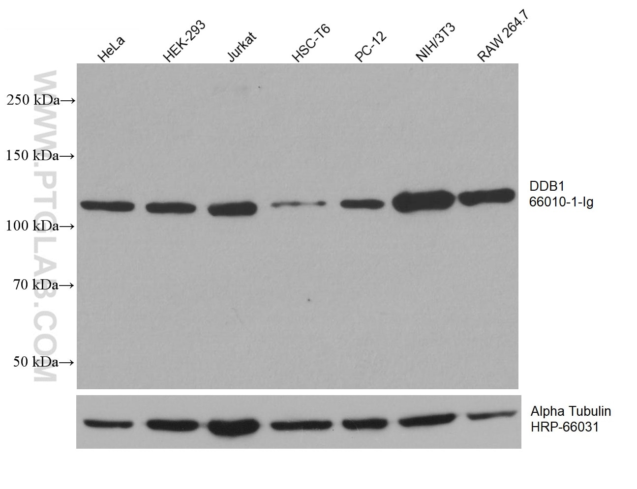 The DDB1 antibody from Proteintech is a mouse monoclonal antibody to a recombinant protein of human DDB1. This antibody recognizes human, mouse, rat antigen. The DDB1 antibody has been validated for the following applications: WB, IHC, ELISA analysis.