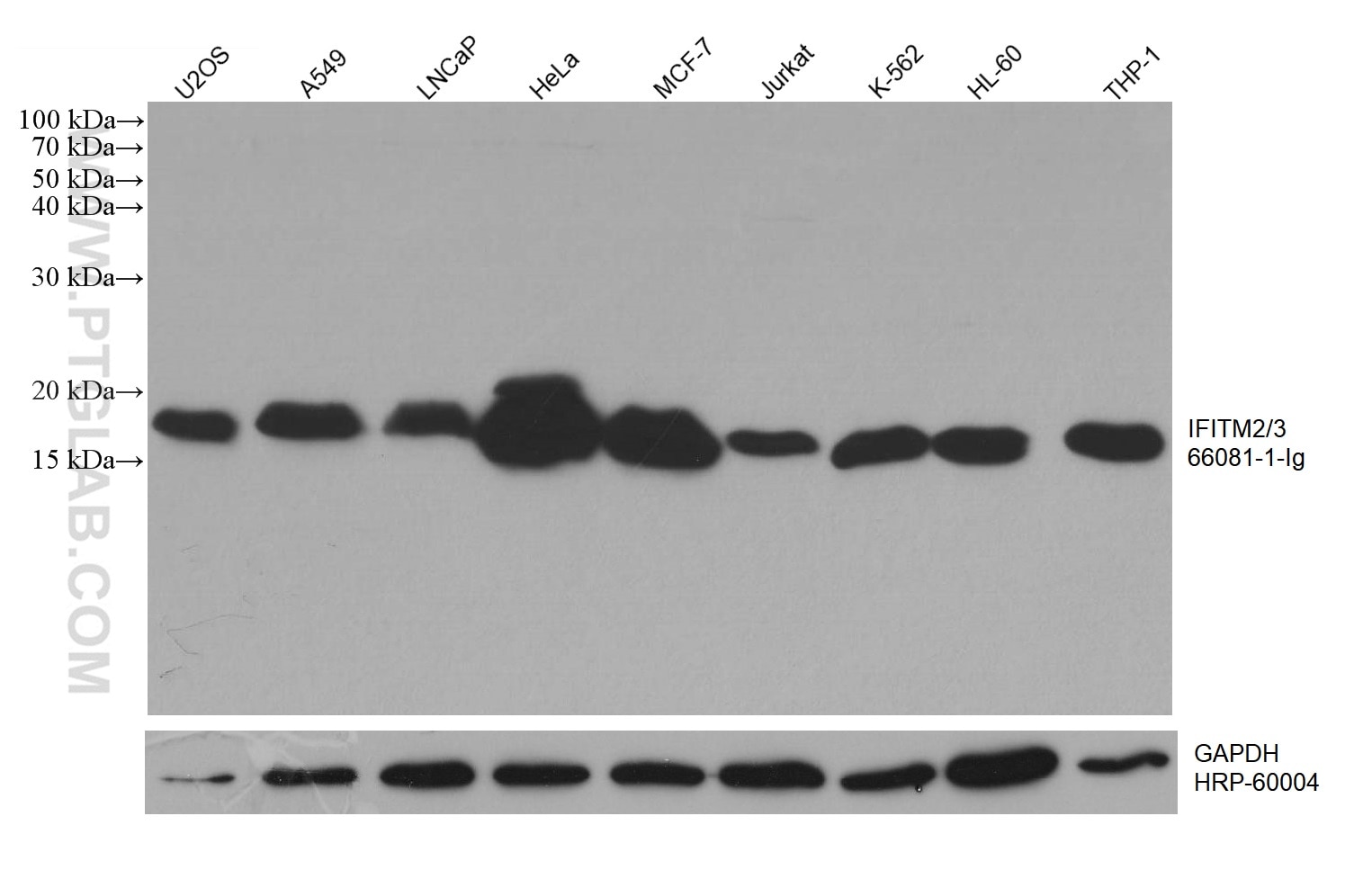 The IFITM2/3 antibody from Proteintech is a mouse monoclonal antibody to a recombinant protein of human IFITM2/3. This antibody recognizes human antigen. The IFITM2/3 antibody has been validated for the following applications: WB, IHC, IF/ICC, ELISA analysis.