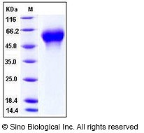 calculated molecular mass: 39 kDa SDS-PAGE under reducing conditions: 50-60 kDa
