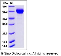 calculated molecular mass: 50.6 kDa SDS-PAGE under reducing conditions: 61-69 kDa