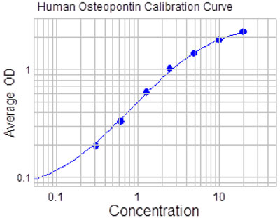 Component ●Human Osteopontin Microplate (96 wells) 12 x 8 strips Ready to use ●Diluent Buffer 60 mL Ready to use ●Human Osteopontin Calibrator 1 vial * ●Detection Antibody 0.150 mL 100X ●HRP Streptavidin Conjugate 0.150 mL 100X ●Wash Buffer 50 mL 20X ●TMB Substrate 12 mL Ready to use ●Stop Solution 12 mL Ready to use