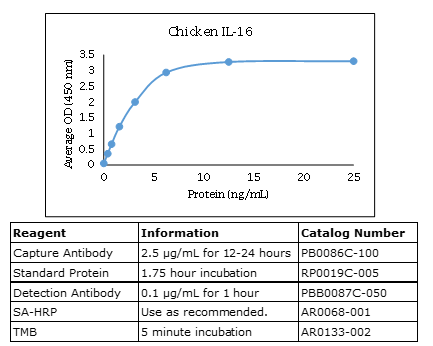 The Chicken IL-16 polyclonal antibody is unlabeled and has been qualified for use in ELISA and Western blot applications. The Chicken IL-16 polyclonal antibody was produced in goats and is antigen-affinity purified. For research use only. Made in the USA