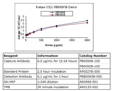 The Bovine CCL2 (MCP-1) polyclonal antibody is unlabeled and has been qualified for use in ELISA. It is the detection antibody in the Kingfisher Biotech Bovine CCL2 ELISA. The Bovine CCL2 polyclonal antibody was produced in goats and is antigen-affinity purified. The reactivity by species is: (Dolphin CCL2 - Weak). For research use only. Made in the USA