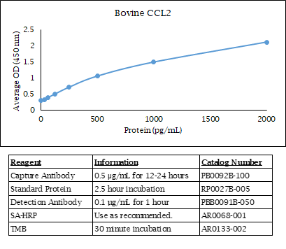 The Bovine CCL2 (MCP-1) polyclonal antibody is labeled and has been qualified for use in ELISA. It is the detection antibody in the Kingfisher Biotech Bovine CCL2 ELISA. The Bovine CCL2 polyclonal antibody was produced in goats and is antigen-affinity purified. The reactivity by species is: (Dolphin CCL2 - Weak). For research use only. Made in the USA