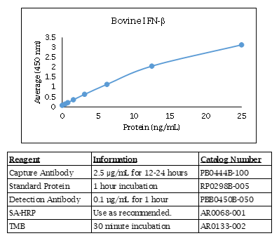 The Bovine IFN beta polyclonal antibody is labeled and has been qualified for use in ELISA. It is the detection antibody in the Kingfisher Biotech Bovine IFN beta ELISA. The Bovine IFN beta polyclonal antibody was produced in goats and is antigen-affinity purified. The reactivity by species is: (Bovine IFN beta - Strong) (Equine IFN beta - Weak) (Mouse IFN beta - Weak) (Swine IFN beta - None). For research use only. Made in the USA