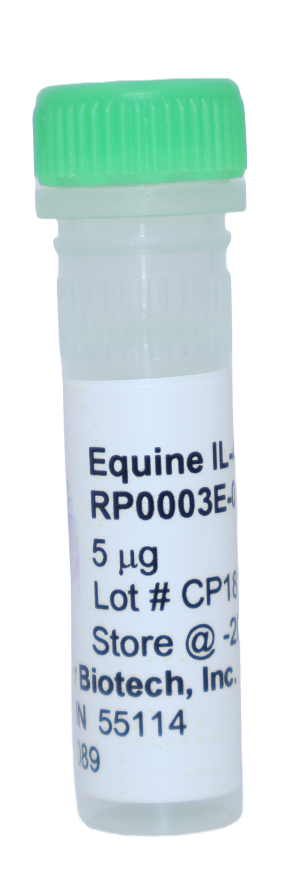 The Equine IL-4 yeast-derived recombinant protein is not tagged and is naturally endotoxin-free. The purity is greater than 98% as visualized by SDS-PAGE analysis. Equine IL-4 applications are for cell culture, ELISA standard, and Western Blot Control. The Equine IL-4 yeast-derived recombinant protein can be purchased in multiple sizes. Equine IL-4 Specifications: (Molecular Weight: 12.8 kda) (Amino Acid Sequence: GCKYDITLQE IIKTLNNLTD GKGKNSCMEL TVADAFAGPK NTDGKEICRA AKVLQQLYKR HDRSLIKECL SGLDRNLKGM ANGTCCTVNE AKKSTLKDFL ERLKTIMKEK YSKC (114)) (Gene ID: 100034225). For research use only. Made in the USA