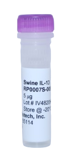 The Swine IL-13 yeast-derived recombinant protein is not tagged and is naturally endotoxin-free. The purity is greater than 98% as visualized by SDS-PAGE analysis. Swine IL-13 applications are for cell culture, ELISA standard, and Western Blot Control. The Swine IL-13 yeast-derived recombinant protein can be purchased in multiple sizes. Swine IL-13 Specifications: (Molecular Weight: 13.2 kDa) (Amino Acid Sequence: LTCFGGLASP GPVPPHSTAL KELIEELVNI TQNQKTPLCN GSMVWSVNLT TSMYCAALES LINISDCSAI QKTQRMLSAL CSHKPPSEQV PGKHIRDTKI EVAQFVKDLL KHLRMIFRHG (120)) (Gene ID: 396721). For research use only. Made in the USA