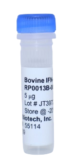 The Bovine IFN gamma yeast-derived recombinant protein is not tagged and is naturally endotoxin-free. The purity is greater than 98% as visualized by SDS-PAGE analysis. Bovine IFN gamma applications are for cell culture, ELISA standard, and Western Blot Control. The Bovine IFN gamma yeast-derived recombinant protein can be purchased in multiple sizes. Bovine IFN gamma Specifications: (Molecular Weight: 16.9 kDa) (Amino Acid Sequence: QGQFFREIEN LKEYFNASSP DVAKGGPLFS EILKNWKDES DKKIIQSQIV SFYFKLFENL KDNQVIQRSM DIIKQDMFQK FLNGSSEKLE DFKKLIQIPV DDLQIQRKAI NELIKVMNDL SPKSNLRKRK RSQNLFRGRR AST) (Gene ID: 281237). For research use only. Made in the USA