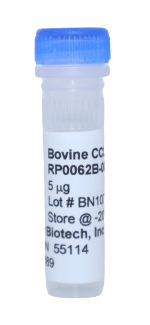 The Bovine CCL5 yeast-derived recombinant protein is not tagged and is naturally endotoxin-free. The purity is greater than 98% as visualized by SDS-PAGE analysis. Bovine CCL5 applications are for cell culture, ELISA standard, and Western Blot Control. The Bovine CCL5 yeast-derived recombinant protein can be purchased in multiple sizes. Bovine CCL5 Specifications: (Molecular Weight: 7.9 kDa) (Amino Acid Sequence: SPYASDTTPCCFAYISRPLPRTHVQEYFYTSSKCSMAAVVFITRKNRQVCANPEKKWVREYINALELS) (Gene ID: 327712). For research use only. Made in the USA
