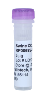The Swine CCL4 yeast-derived recombinant protein is not tagged and is naturally endotoxin-free. The purity is greater than 98% as visualized by SDS-PAGE analysis. Swine CCL4 applications are for cell culture, ELISA standard, and Western Blot Control. The Swine CCL4 yeast-derived recombinant protein can be purchased in multiple sizes. Swine CCL4 Specifications: (Molecular Weight: 7.8 kDa) (Amino Acid Sequence: APMGSDPPTSCCFTYTVRKLPRNFVTDYYETSSLCSQPAVVFQTKKGRQVCANPSDDWVQEYMDDLELN) (Gene ID: 396668). For research use only. Made in the USA