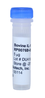 The Bovine IL-36 yeast-derived recombinant protein is not tagged and is naturally endotoxin-free. The purity is greater than 98% as visualized by SDS-PAGE analysis. Bovine IL-36 applications are for cell culture, ELISA standard, and Western Blot Control. The Bovine IL-36 yeast-derived recombinant protein can be purchased in multiple sizes. Bovine IL-36 Specifications: (Molecular Weight: 17.1 kDa) (Amino Acid Sequence: MVLSGALCFRMKDAALKVLYLHDNQLLAGGLQAGKVIKGEEISVVPNRSLDAKLSPVILGVHGGSQCLSCGTGQEPTLKLEPVNIMELYHSAEKSKKFTFYRRDTGLTSSFESAAYPGWFLCTVPEADQPLQITQLPKDTSWDNPIIDFYFQQCD) (Gene ID: 518514). For research use only. Made in the USA