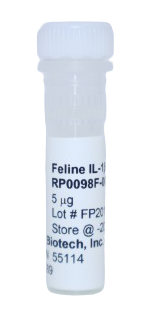 The Feline IL-1 beta yeast-derived recombinant protein is not tagged and is naturally endotoxin-free. The purity is greater than 98% as visualized by SDS-PAGE analysis. Feline IL-1 beta applications are for cell culture, ELISA standard, and Western Blot Control. The Feline IL-1 beta yeast-derived recombinant protein can be purchased in multiple sizes. Feline IL-1 beta Specifications: (Molecular Weight: 17.4 kDa) (Amino Acid Sequence: AAIQSQDYTFRDISQKSLVLSGSYELRALHLNGQNMNQQVVFRMSFVHGEENSKKIPVVLCIKKNNLYLSCVMKDGKPTLQLEMLDPKVYPKKKMEKRFVFNKTEIKGNVEFESSQFPNWYISTSQAEEMPVFLGNTKGGQDITDFIMESAS) (Gene ID: 768274). For research use only. Made in the USA