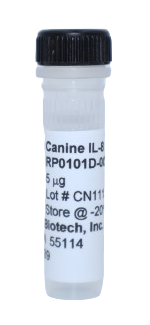 The Canine IL-8 yeast-derived recombinant protein is not tagged and is naturally endotoxin-free. The purity is greater than 98% as visualized by SDS-PAGE analysis. Canine IL-8 applications are for cell culture, ELISA standard, and Western Blot Control. The Canine IL-8 yeast-derived recombinant protein can be purchased in multiple sizes. Canine IL-8 Specifications: (Molecular Weight: 8.6 kDa) (Amino Acid Sequence: VSSELRCQCIKTHSTPFHPKYIKELRVIDSGPHCENSEIIVKLFNGNEVCLDPKEKWVQKVVQIFLKKAEKQDP) (Gene ID: 403850). For research use only. Made in the USA