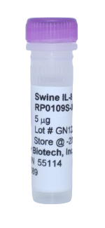 The Swine IL-8 yeast-derived recombinant protein is not tagged and is naturally endotoxin-free. The purity is greater than 98% as visualized by SDS-PAGE analysis. Swine IL-8 applications are for cell culture, ELISA standard, and Western Blot Control. The Swine IL-8 yeast-derived recombinant protein can be purchased in multiple sizes. Swine IL-8 Specifications: (Molecular Weight: 9.1 kDa) (Amino Acid Sequence: ARVSAELRCQ CINTHSTPFH PKFIKELRVI ESGPHCENSE IIVKLVNGKE VCLDPKEKWV QKVVQIFLKR TEKQQQQQ (78)) (Gene ID: 396880). For research use only. Made in the USA