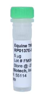 The Equine TNF alpha yeast-derived recombinant protein is not tagged and is naturally endotoxin-free. The purity is greater than 98% as visualized by SDS-PAGE analysis. Equine TNF alpha applications are for cell culture, ELISA standard, and Western Blot Control. The Equine TNF alpha yeast-derived recombinant protein can be purchased in multiple sizes. Equine TNF alpha Specifications: (Molecular Weight: 17.1 kDa) (Amino Acid Sequence: LRSSSRTPSD KPVAHVVANP QAEGQLQWLS GRANALLANG VKLTDNQLVV PLDGLYLIYS QVLFKGQGCP STHVLLTHTI SRLAVSYPSK VNLLSAIKSP CHTESPEQAE AKPWYEPIYL GGVFQLEKGD QLSAEINQPN YLDFAESGQV YLGIIAL (157)) (Gene ID: 100033834). For research use only. Made in the USA
