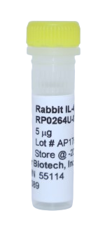 The Rabbit IL-4 yeast-derived recombinant protein is not tagged and is naturally endotoxin-free. The purity is greater than 98% as visualized by SDS-PAGE analysis. Rabbit IL-4 applications are for cell culture, ELISA standard, and Western Blot Control. The Rabbit IL-4 yeast-derived recombinant protein can be purchased in multiple sizes. Rabbit IL-4 Specifications: (Molecular Weight: 14.2 kDa) (Amino Acid Sequence: GRRGDIILPE VIKTLNILTE RKTPCTKLMI ADALAVPKNT TEREAVCRAA TALRQFYLHH KVSWCFKEHG ELGDLRLLRG LDRNLCSMAK LSNCPGKEAR QTTLEDFLDR LKTAMQEKYS KRQS (124)) (Gene ID: 100302454). For research use only. Made in the USA