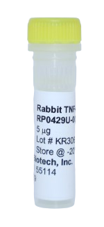 The Rabbit TNF alpha yeast-derived recombinant protein is not tagged and is naturally endotoxin-free. The purity is greater than 98% as visualized by SDS-PAGE analysis. Rabbit TNF alpha applications are for cell culture, ELISA standard, and Western Blot Control. The Rabbit TNF alpha yeast-derived recombinant protein can be purchased in multiple sizes. Rabbit TNF alpha Specifications: (Molecular Weight: 17.0 kDa) (Amino Acid Sequence: SASRALSDKP LAHVVANPQV EGQLQWLSQR ANALLANGMK LTDNQLVVPA DGLYLIYSQV LFSGQGCRSY VLLTHTVSRF AVSYPNKVNL LSAIKSPCHR ETPEEAEPMA WYEPIYLGGV FQLEKGDRLS TEVNQPEYLD LAESGQVYFG IIAL (154)) (Gene ID: 100009088). For research use only. Made in the USA