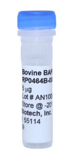 The Bovine/Ovine/Caprine BAFF yeast-derived recombinant protein is not tagged and is naturally endotoxin-free. The purity is greater than 98% as visualized by SDS-PAGE analysis. Bovine/Ovine/Caprine BAFF applications are for cell culture, ELISA standard, and Western Blot Control. The Bovine/Ovine/Caprine BAFF yeast-derived recombinant protein can be purchased in multiple sizes. Bovine/Ovine/Caprine BAFF Specifications: (Molecular Weight: 17.1 kDa) (Amino Acid Sequence: ALQEAEETVT QDCLQLIADS DTPTIRKGAY TFVPWLLSFK RGRALEEKEN KILVKETGYF FIYGQVLYTD NTFAMGHLIQ RKKVHVFGDE LSLVTLFRCI QNMPETLPNN SCYSAGIAKL EEGDELQLAI PREDAKISRD GDGTFFGALK LL (152)) (Gene ID: 504507). For research use only. Made in the USA