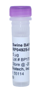 The Swine BAFF yeast-derived recombinant protein is not tagged and is naturally endotoxin-free. The purity is greater than 98% as visualized by SDS-PAGE analysis. Swine BAFF applications are for cell culture, ELISA standard, and Western Blot Control. The Swine BAFF yeast-derived recombinant protein can be purchased in multiple sizes. Swine BAFF Specifications: (Molecular Weight: 17.1 kDa) (Amino Acid Sequence: AAQDAEETVT QDCLQLIADS DMPTIRKGAY TFVPWLLSFK RGRALEEKEN KIVVKETGYF FIYGQVLYTD NTFAMGHLIQ RKKVHVFGDE LSLVTLFRCI QNMPETLPNN SCYSAGIAKL EEGDELQLAI PREDAKISRD GDGTFFGALK LL (152)) (Gene ID: 100038026). For research use only. Made in the USA