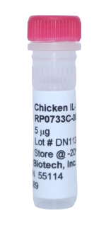 The Chicken IL-13 yeast-derived recombinant protein is not tagged and is naturally endotoxin-free. The purity is greater than 98% as visualized by SDS-PAGE analysis. Chicken IL-13 applications are for cell culture, ELISA standard, and Western Blot Control. The Chicken IL-13 yeast-derived recombinant protein can be purchased in multiple sizes. Chicken IL-13 Specifications: (Molecular Weight: 13.0 kDa) (Amino Acid Sequence: AMNLSKLKLS DITQGIQKLN RGVQFPCNDT RVAQVAFKDR KLSEQELLCQ AATVLDNMTD CKKDYEPLIT SLKSLHGMTN CPPSTDNEIY LRNFLPALRN YTQALYRRIS ATAAN (115)) (Gene ID: 474361). For research use only. Made in the USA