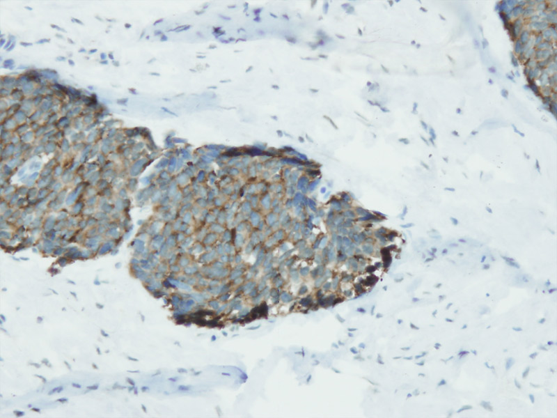 Synaptophysin or major synaptic vesicle protein p38, is an integral membrane glycoprotein expressed in presynaptic vesicles of neurons and neuromuscular junctions. Its expression has been reported in wide spectrum of neuroendocrine tumors and neuroendocrine tumors of epithelial type - medullary carcinomas of thyroid gland, parathyroid adenomas, pituitary adenomas, neuroendocrine carcinomas of bronchopulmonary and gastrointestinal tract and neuroendocrine carcinomas of skin.