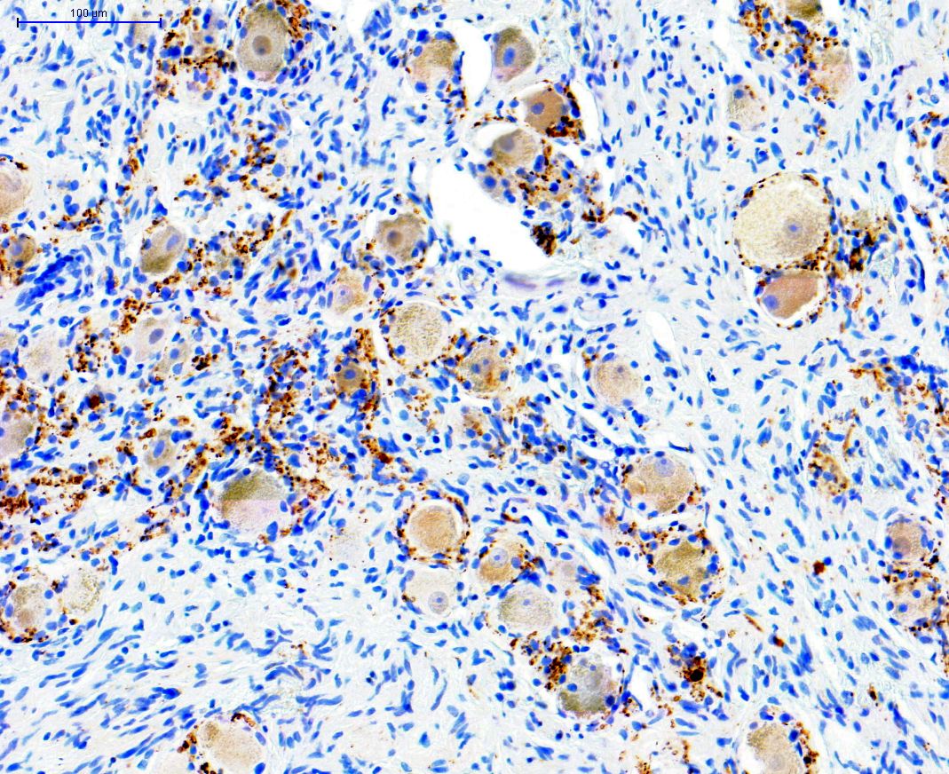 Formalin-fixed and paraffin-embedded human vegetative ganglion stained with anti-Synaptophysin (DB156), shows perfect immunostaining of synaptic structures. Kindly performed and provided by the Laboratory of Histopathology, Ltd. Hungary.