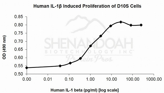 インターロイキン-1β(IL-1β)は、単球やマクロファージ、樹状細胞を含む様々な細胞の炎症因子に応答して生産される炎症後のサイトカインです。IL-1βとIL-1αは2つの異なる独立した制御遺伝子産物で、IL-1とタイプ1 IL-1受容体(IL-1R1)を経由したシグナルから成ります。IL-1αは細胞結合型で、IL-1βは分泌型ですが、上皮細胞での接着分子の発現の誘導、発熱の制御、関節炎や敗血性ショックでの役割など、これらはほとんど同一の生理活性を有します。IL-1R1によって活性化されたシグナルは、トール受容体にそれらが結合するのと類似したMYD88シグナリング経路を介したそれらの活性を促進します。リコンビナントヒトIL-1βは非グリコシル化タンパク質で、153のアミノ酸を含み分子量は17.4 kDaです。アニマルフリー:この製品は、非動物由来の原料から、アニマルフリーの装置及びプロトコルで製造されています。