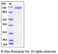 calculated molecular mass: 71.1 kDa SDS-PAGE under reducing conditions: 100-110 kDa