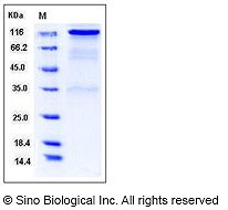 calculated molecular mass: 97 kDa SDS-PAGE under reducing conditions: 130 kDa