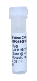 The Feline CXCL10 yeast-derived recombinant protein is not tagged and is naturally endotoxin-free. The purity is greater than 98% as visualized by SDS-PAGE analysis. Feline CXCL10 applications are for cell culture, ELISA standard, and Western Blot Control. The Feline CXCL10 yeast-derived recombinant protein can be purchased in multiple sizes. Feline CXCL10 Specifications: (Molecular Weight: 8.7 kDa) (Amino Acid Sequence: IPLSRTPRCT CIKISELSVN LRSLEKLEVI PASHFCPRVE IIATMKKNGE KTCLNPESKT IKNLVKAISK ERSKRSP (77)) (Gene ID: 101100131). For research use only. Made in the USA