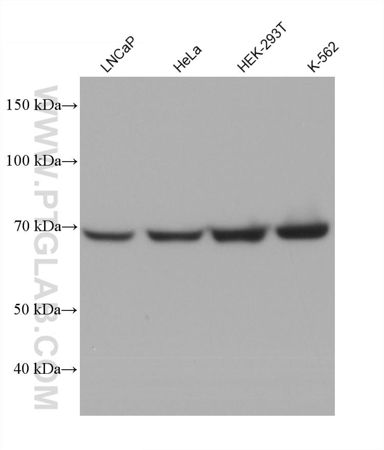The HSP70 antibody from Proteintech is a mouse monoclonal antibody to a recombinant protein of human HSP70. This antibody recognizes human, mouse, rat, yeast antigen. The HSP70 antibody has been validated for the following applications: WB, IHC, IF/ICC, FC (Intra), ELISA analysis.