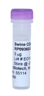 The Swine CD40 Ligand yeast-derived recombinant protein is not tagged and is naturally endotoxin-free. The purity is greater than 98% as visualized by SDS-PAGE analysis. Swine CD40 Ligand applications are for cell culture, ELISA standard, and Western Blot Control. The Swine CD40 Ligand yeast-derived recombinant protein can be purchased in multiple sizes. Swine CD40 Ligand Specifications: (Molecular Weight: 16.0 kDa) (Amino Acid Sequence: MHKGDQDPQI AAHVISEASS KTASVLQWAP KGYYTLSTNL VTLENGRQLA VKRQGIYYIY AQVTFCSNRD AAGQAPFIAS LCLRSPSGSE RILLRAANTH SSSKPCGQQS IHLGGVFELQ PGASVFVNVT DPSQVSHGTG FTSFGLLKL (149)) (Gene ID: 397231). For research use only. Made in the USA