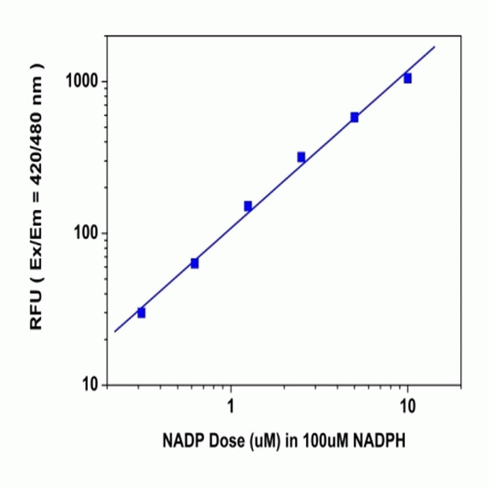 Component A: Quest FluorTM NADP Probe One bottle (5 mL) Component B: Assay Solution 1 bottle (5 mL) Component C: Enhancer Solution 1 bottle (3.5 mL) Component D: NADP Standard 1vial ( 389 μg)