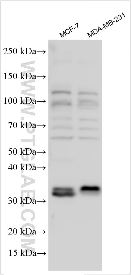The SIAH2 antibody from Proteintech is a rabbit polyclonal antibody to a recombinant protein of human SIAH2. This antibody recognizes human, mouse, rat antigen. The SIAH2 antibody has been validated for the following applications: WB, IHC, IF/ICC, IP, ELISA analysis.