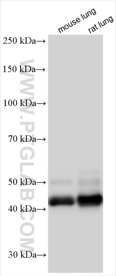 The AGER/RAGE antibody from Proteintech is a rabbit polyclonal antibody to a recombinant protein of human AGER/RAGE. This antibody recognizes human, mouse, rat antigen. The AGER/RAGE antibody has been validated for the following applications: WB, IHC, IF-P, ELISA analysis.