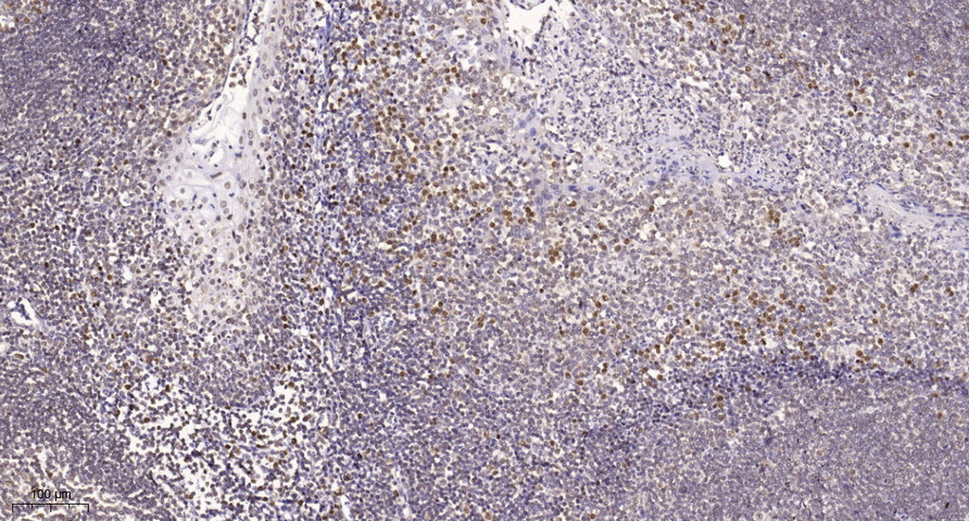 Immunohistochemical analysis of paraffin-embedded human tonsil. 1, Tris-EDTA,pH9.0 was used for antigen retrieval. 2 Antibody was diluted at 1:200(4° overnight.3,Secondary antibody was diluted at 1:200(room temperature, 45min).