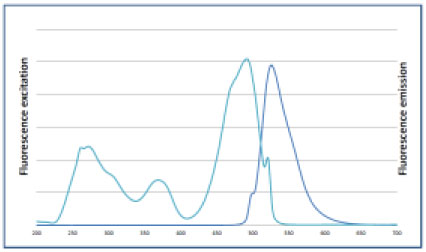 dsDNA に結合した FluoroDye 蛍光波長: 522 nm 励起波長: 270、370、497 nm